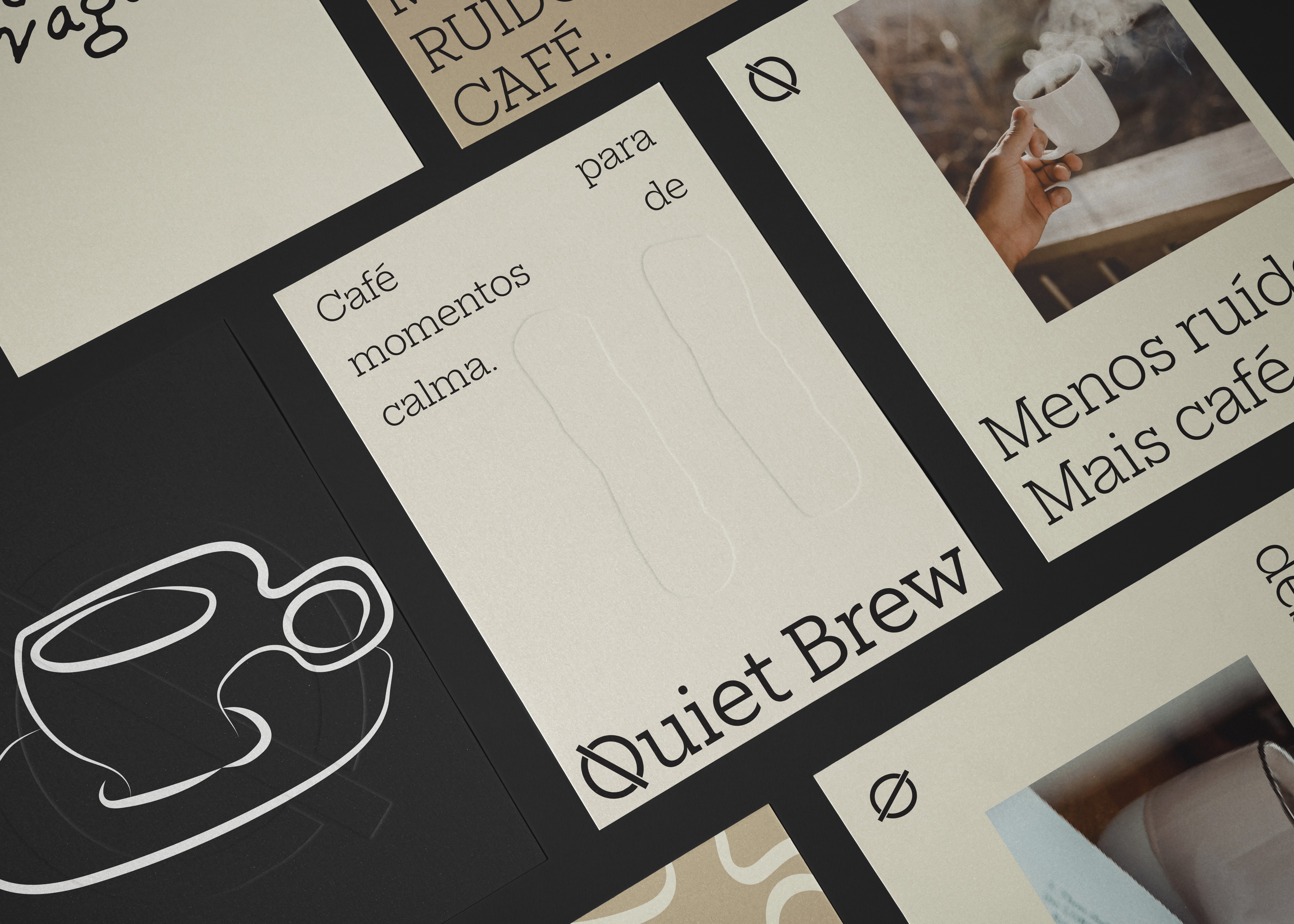 Quiet Brew required the development of a visual identity capable of expressing calm, slowness, and intention within the specialty coffee segment, without relying on conventional or overused visual cues. The brand needed to communicate quality and care through restraint, using space, proportion, and hierarchy as primary design tools. The resulting system balances distinction and expression while functioning consistently across packaging, editorial materials, and digital applications.